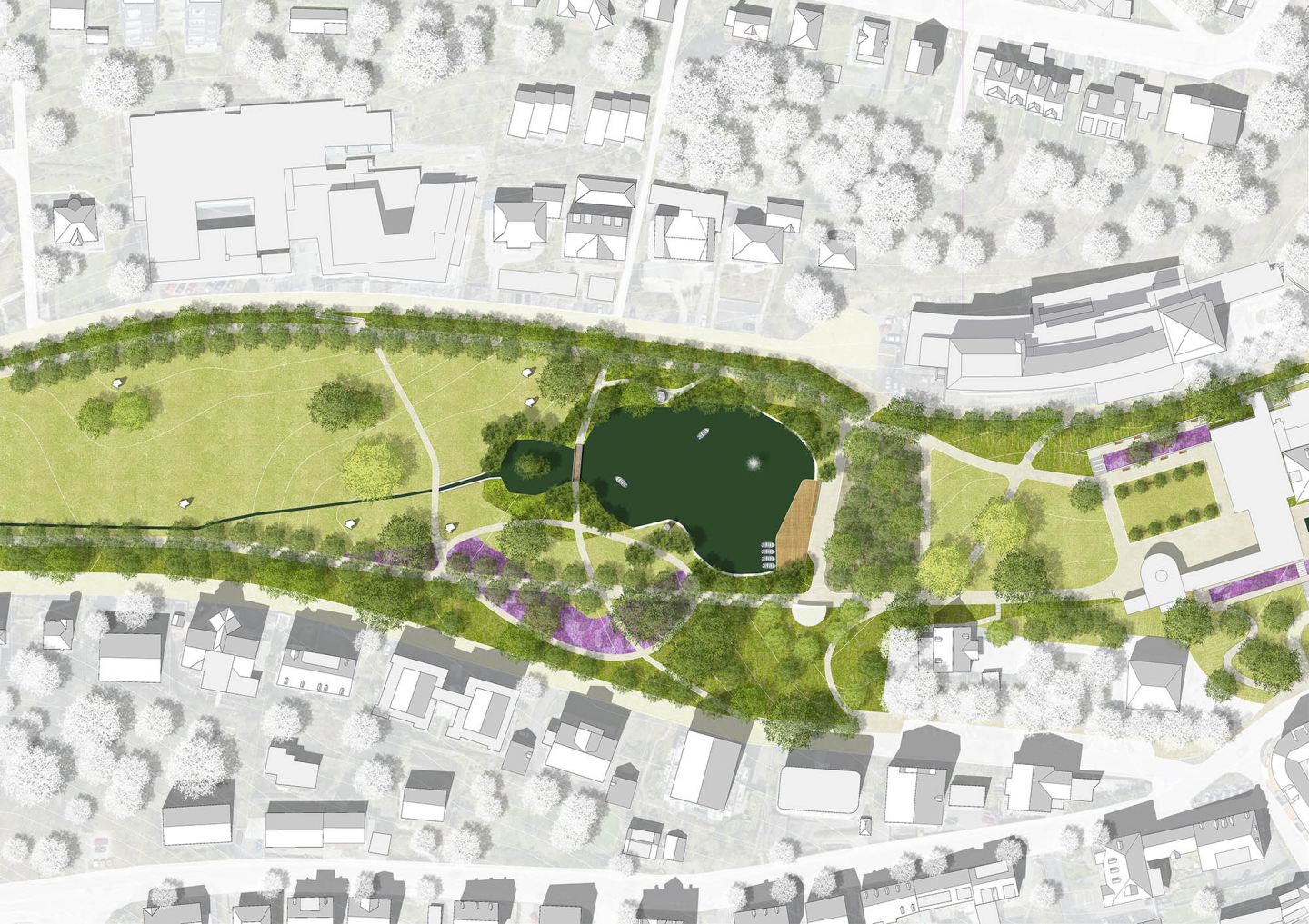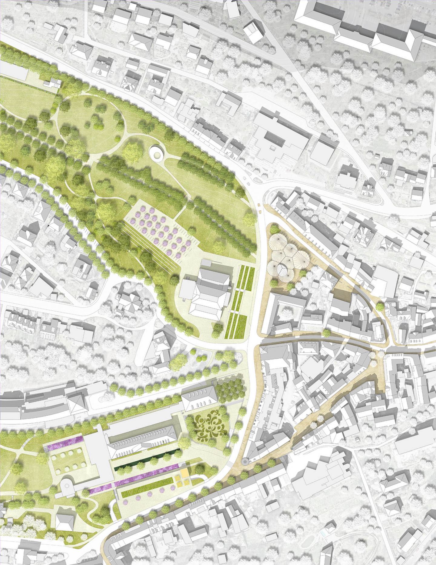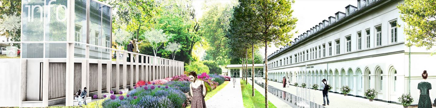 Das Konzept für die Freiraumgestaltung beinhaltet die Anpassung der räumlichen, infrastrukturellen und gestalterischen Intensionen unter Bezugnahme auf das Parkpflegewerk sowie den Interessen und Anforderungen zeitgemäßer Kurparkangebote. Dabei stellt die Landschaft einen integralen Bestandteil der Planung dar. Die besondere Topographie, die klar definierten Waldränder sowie der parkartige Übergang vom Stadt- zum Landschaftsraum, insbesondere jedoch das Konzept der in die Landschaft führenden Promenadenwege stellen die wesentlichen gestalterischen Bezüge dar, bilden das Grundgerüst und sind gleichzeitig Potenzial für das Freiraumkonzept.