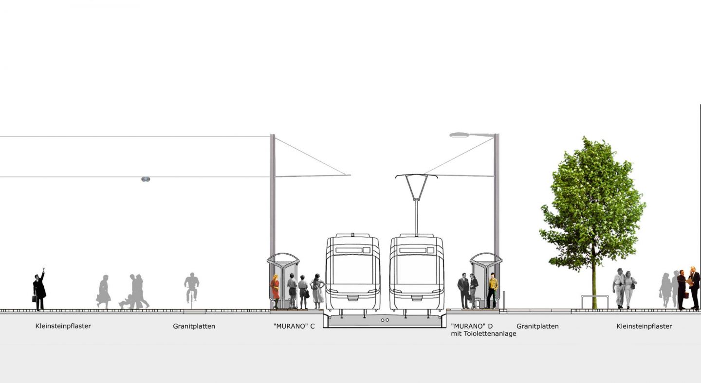 Der Doberaner Platz, an der Schnittstelle zur Innenstadt, ist das Schlüsselprojekt der Rostocker Stadtsanierung und Bestandteil des Sanierungsgebietes „Stadtzentrum Rostock“. Hier steigen täglich bis zu 15.000 Menschen ein, aus und um. Wichtigste gestalterische Ziele waren die Herausarbeitung der unterschiedlichen Charaktere der einzelnen Teilräume und die Gestaltung der Raumfolge für Aufenthalt und Nutzung durch Anlieger und Passanten.