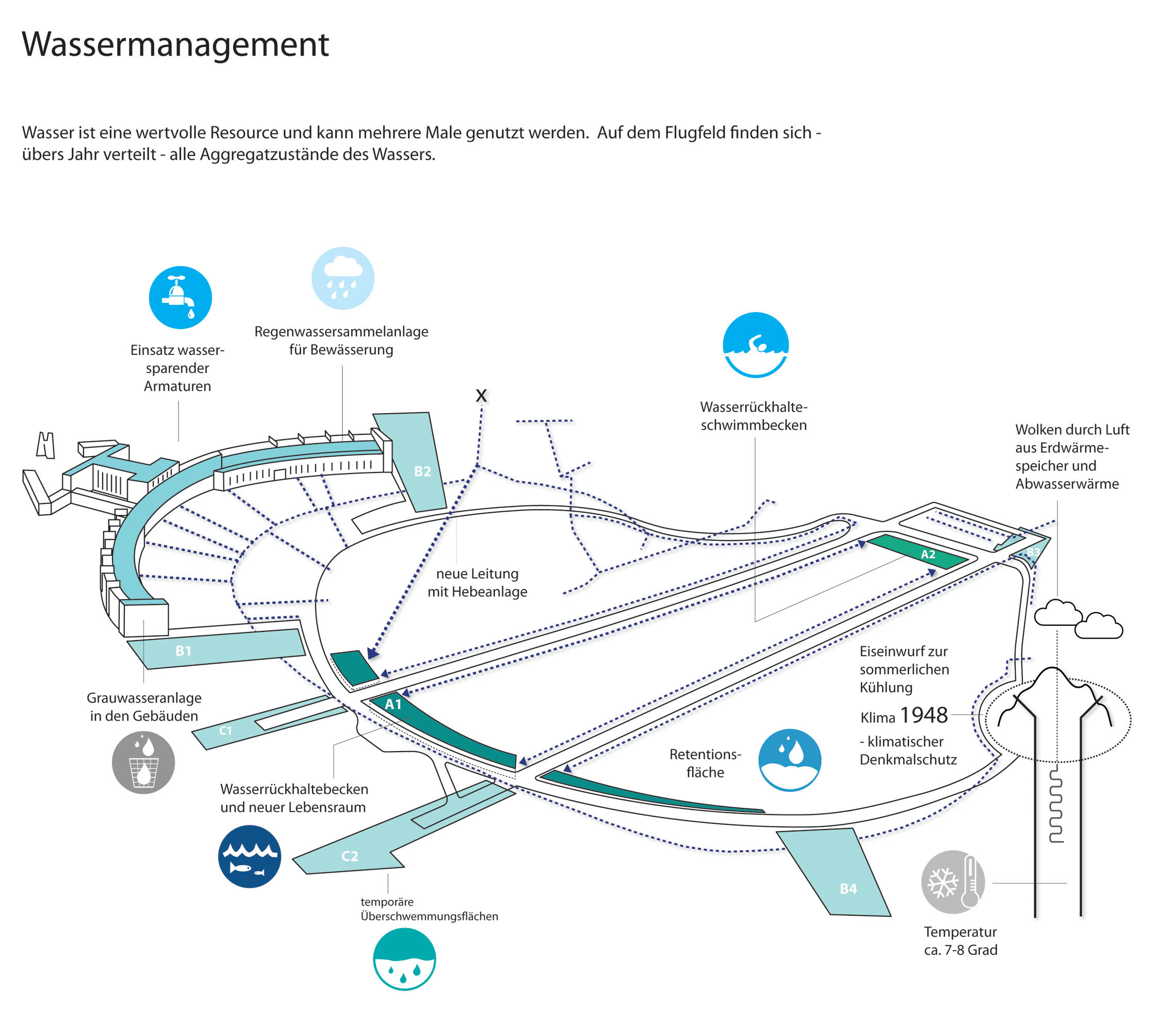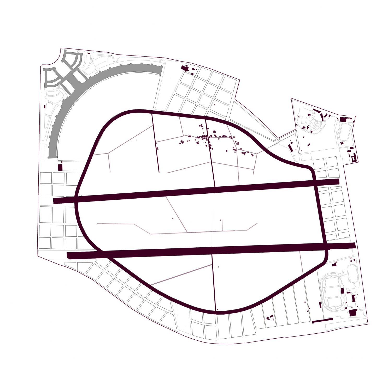Das Tempelhofer Feld ist in stadtzentraler Lage Bestandteil der südlichen Berliner Innenstadt und bildet zwischen den Berliner Bezirken Tempelhof-Schöneberg, Neukölln und letztlich Friedrichshain-Kreuzberg eine ca. 370ha große Raumspange zwischen den sehr unterschiedlich geprägten Milieus der angrenzenden Quartiere. Noch stellt sich das Gebiet als urbanes Vakuum, als ein Raum in Warteschleife dar, dessen alte Nutzung aufgehört hat und in den sich neue Strukturen erst zögernd abzeichnen.