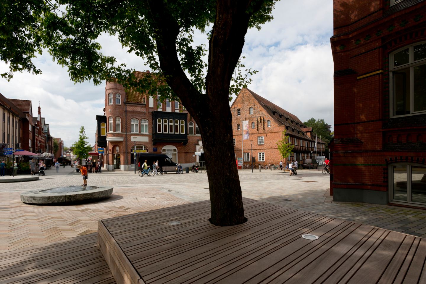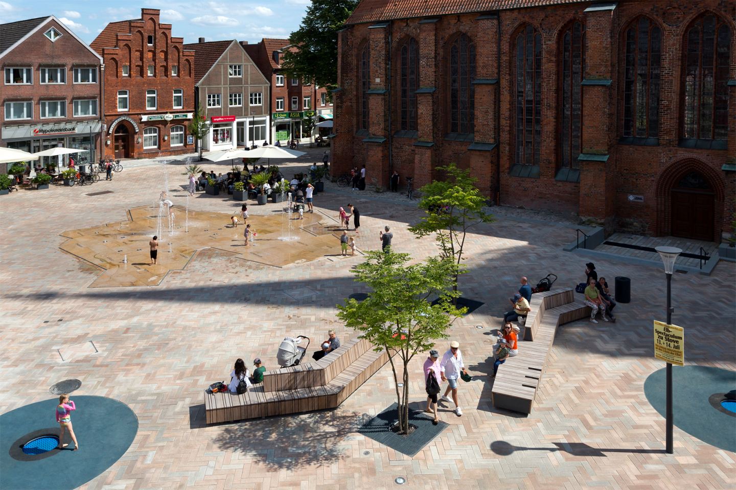 Um die städtischen Bezüge weiter zu stärken, haben wir gezielt eine Neuordnung des Baumbestands umgesetzt. Gleichzeitig haben wir den Grünanteil deutlich erhöht – ein Beitrag zum Stadtklima, der auch optisch und atmosphärisch Akzente setzt.
